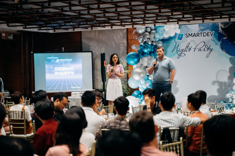 Tiếp nối sự kiện “Ra mắt văn phòng xịn xò”, SmartDev lại tiếp tục tổ chức sự kiện “Night Party” – một bữa “chill và quẩy” với sự góp mặt của ban lãnh đạo công ty và đặc biệt là các Smarties – những người đã cùng nhau xây dựng và phát triển SmartDev vào ngày 22/4/2022 vừa qua.
