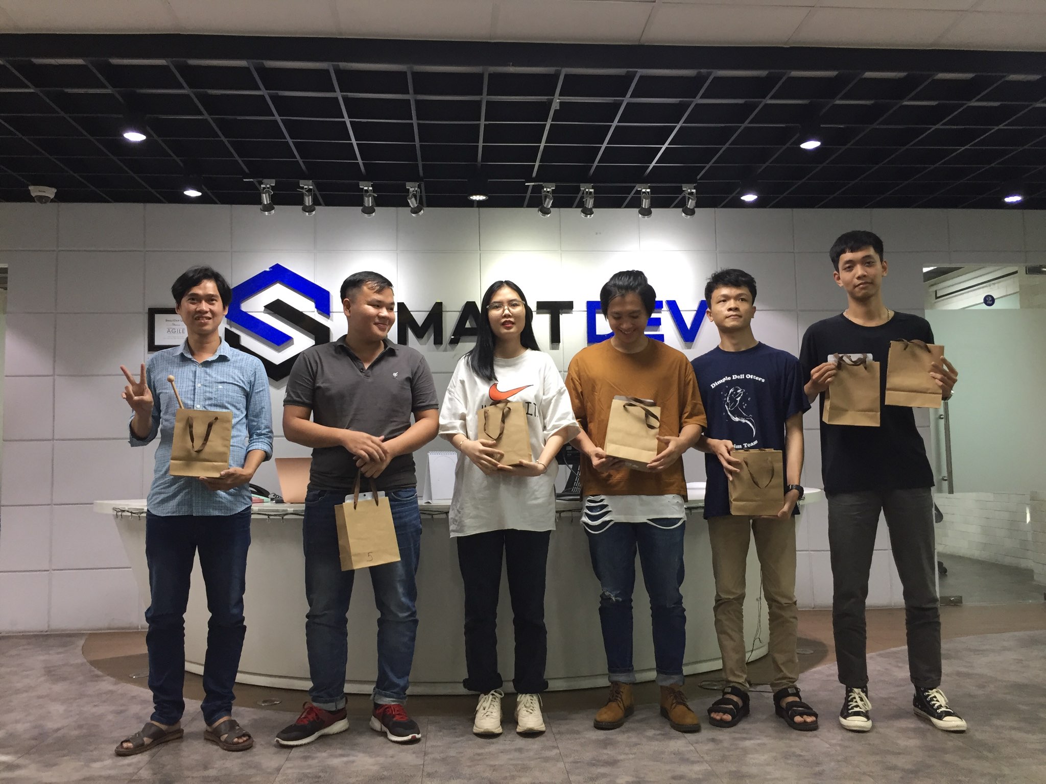 Kết thúc khoá thực tập, các bạn thực tập sinh đã tiến hành trình bài các dự án demo của mình trong quá trình “học và làm” tại SmartDev. Qua đây, công ty đã ghi nhận và tìm ra được rất nhiều gương mặt nổi bật và xuất sắc trong lĩnh vực các bạn đang theo học. Sau khi hoàn thành khoá thực tập, các bạn sinh viên sẽ được trao bằng khen xác nhận thực tập và các món quà đậm chất SmartDev, đồng thời các bạn thực tập sinh có thành tích xuất sắc sẽ được trao các suất học bổng vô cùng giá trị. SmartDev hy vọng tiếp thêm động lực và niềm tin cho thế hệ trẻ trong những bước đầu của hành trình theo đuổi đam mê và phát triển sự nghiệp.